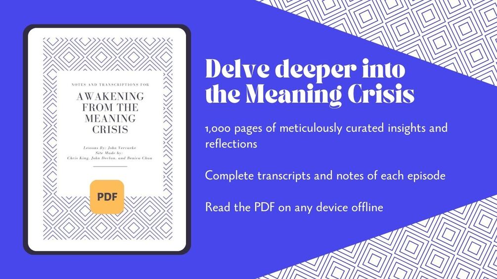Embark on a deeper exploration of the Meaning Crisis series with our specially curated offline collection. This comprehensive PDF compilation features over 1,000 pages of transcripts and notes—handpicked from our free WordPress content—now conveniently available for offline access.